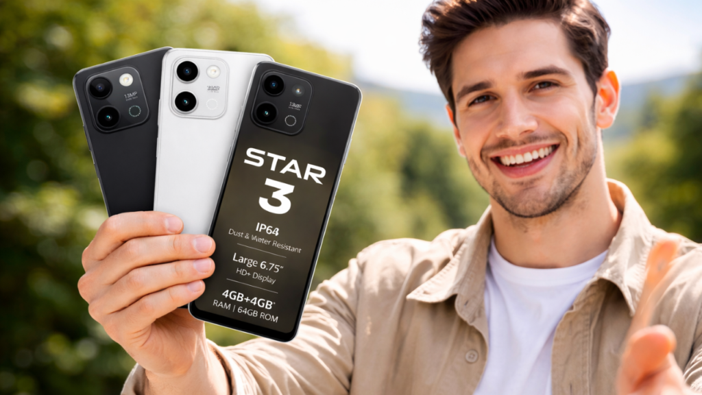 लावा ने अपनी Yuva सीरीज़ में एक नया स्मार्टफोन लॉन्च किया है, जिसका नाम है LAVA Star 3 यह फोन खास तौर पर उन लोगों के लिए बनाया गया है जो पहली बार स्मार्टफोन खरीद रहे हैं। सिर्फ 7,499 रुपये की कीमत में इसमें आपको 6.75 इंच का बड़ा डिस्प्ले, 5000 एमएएच की बैटरी और एंड्रॉइड 15 गो एडिशन मिलता है। साथ ही डुअल कैमरा सेटअप और IP64 डस्ट व वॉटर रेजिस्टेंस रेटिंग दी गई है, जिससे यह फोन मजबूत और टिकाऊ दिया है। लावा की फ्री होम सर्विस और एक साल की वारंटी इसे और भरोसेमंद बनाती है आइए इसके सभी फीचर का बारे मे डिटेल्स मे जानते है